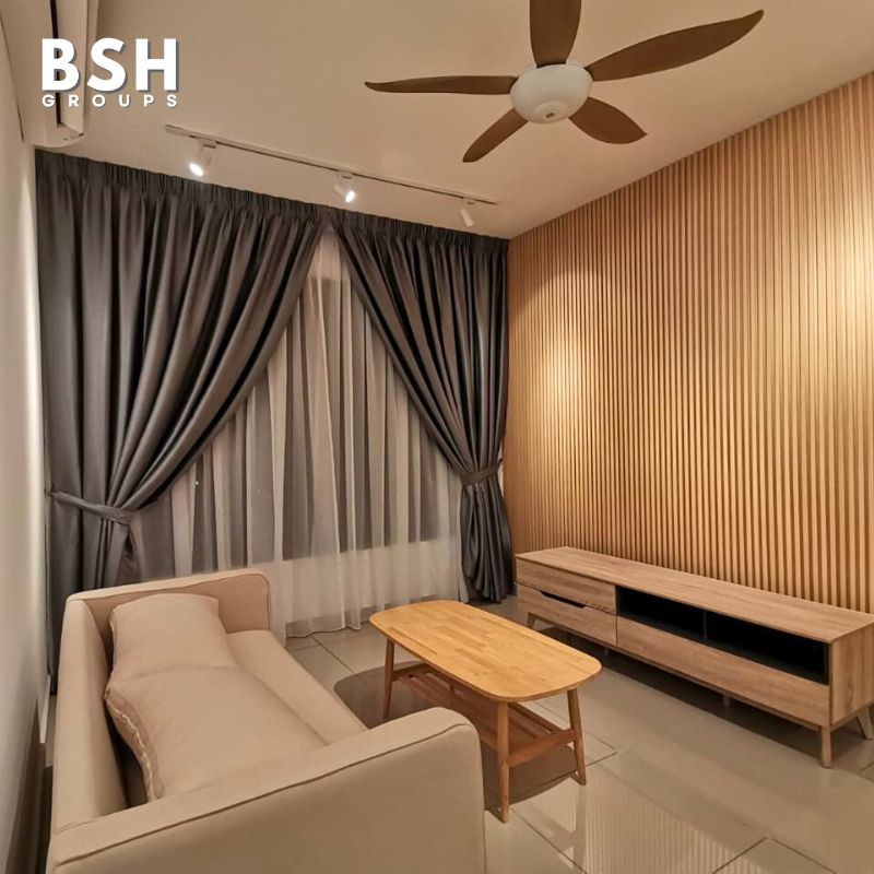This full-home renovation project at M Vertical Condominium features a modern Muji-inspired design. Warm wood tones, fluted panels, and clean white finishes create a calming and refreshing atmosphere. The renovation includes electrical and plumbing works, custom carpentry, metal works, grill doors and window frames, and curtains.
